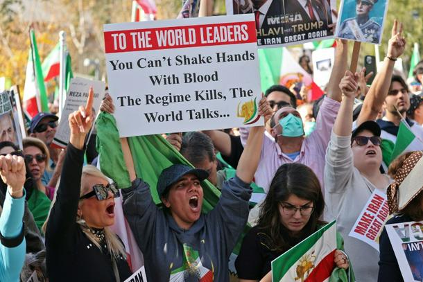 Many protesting in the Californian city chanted slogans in support of the US president and Reza Pahlavi, the son of the former Shah of Iran who was deposed by the popular uprising in 1979.