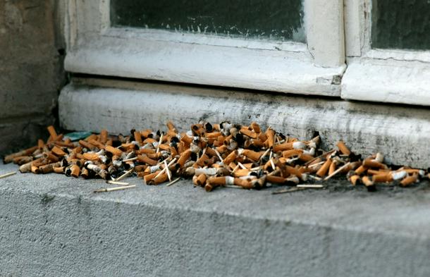 Cigarette butts on a window ledge in Paris