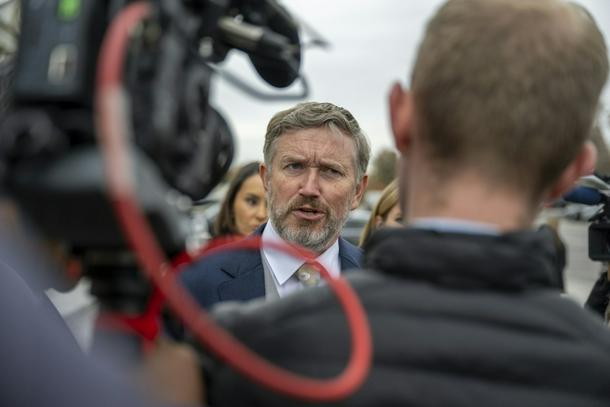 L'élu républicain Thomas Massie parle à la presse devant le Capitole de Washington, le 18 novembre 2025