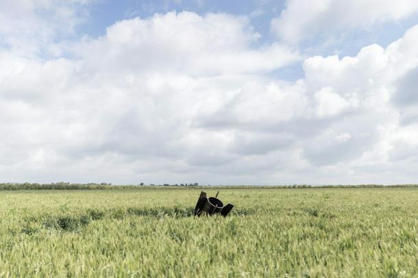 Remnants of an Iranian missile are seen near the border between the Israeli-annexed Golan Heights and Syria
