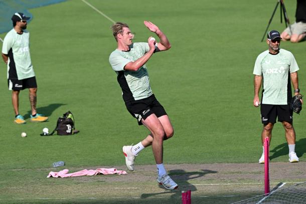 New Zealand's Kyle Jamieson bowls during training on the eve of the T20 World Cup semi-final against South Africa at Eden Gardens in Kolkata