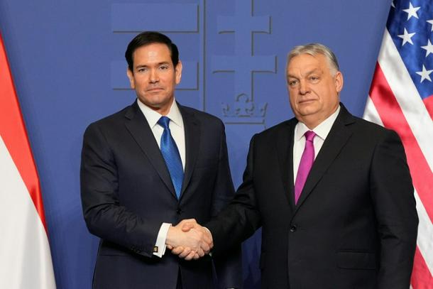 US Secretary of State Marco Rubio's meeting with Hungarian Prime Minister Viktor Orban (R) is the final stage of a whirlwind trip to Europe
