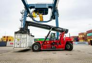 At a windswept container park near the sprawling port of Rotterdam, a crane slots a 30-tonne white battery into a …
