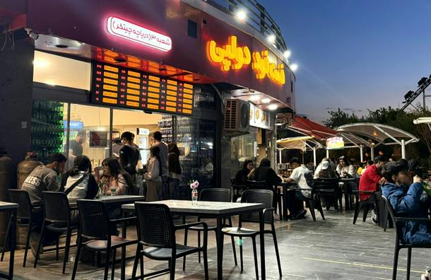 Iranians gather at an eatery in northwestern Tehran. Despite an outward appearance of normality, many are under severe financial strain