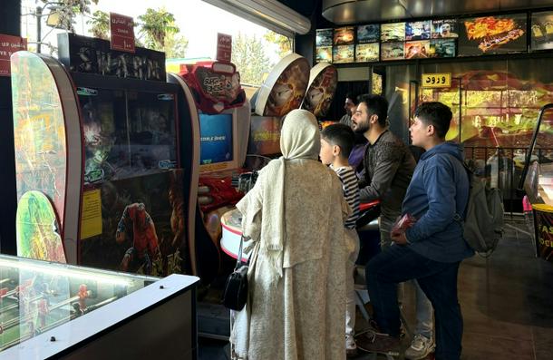 Iranians play games at an arcade in the capital. While some are trying to return to normal life under the ceasefire, others can't afford leisure activities
