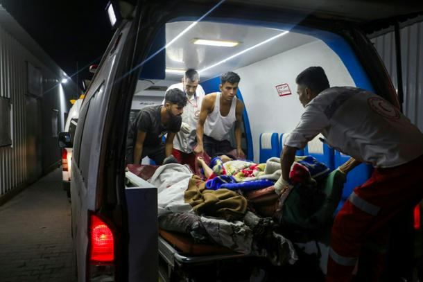 People wounded in fresh Israeli strikes in Gaza are brought to Al-Awda hospital in Nuseirat on Wednesday