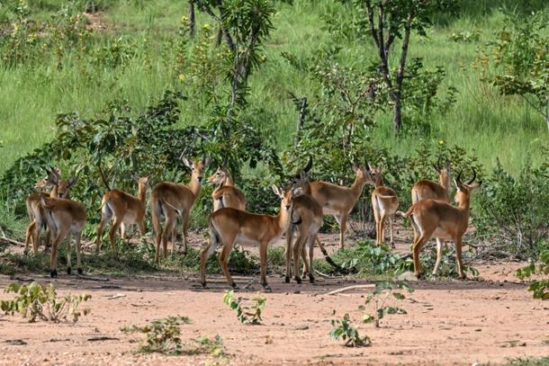 A herd of antelope in the Comoe National Park in northeastern Ivory Coast