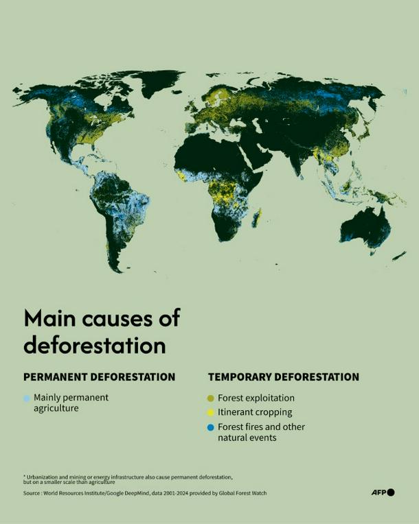 Paris (France) (AFP) - The pace of tropical forest destruction slowed in 2025 after record losses the year before but remained at worrying levels equivalent to 11 football fields per minute, researchers said Wednesday.
